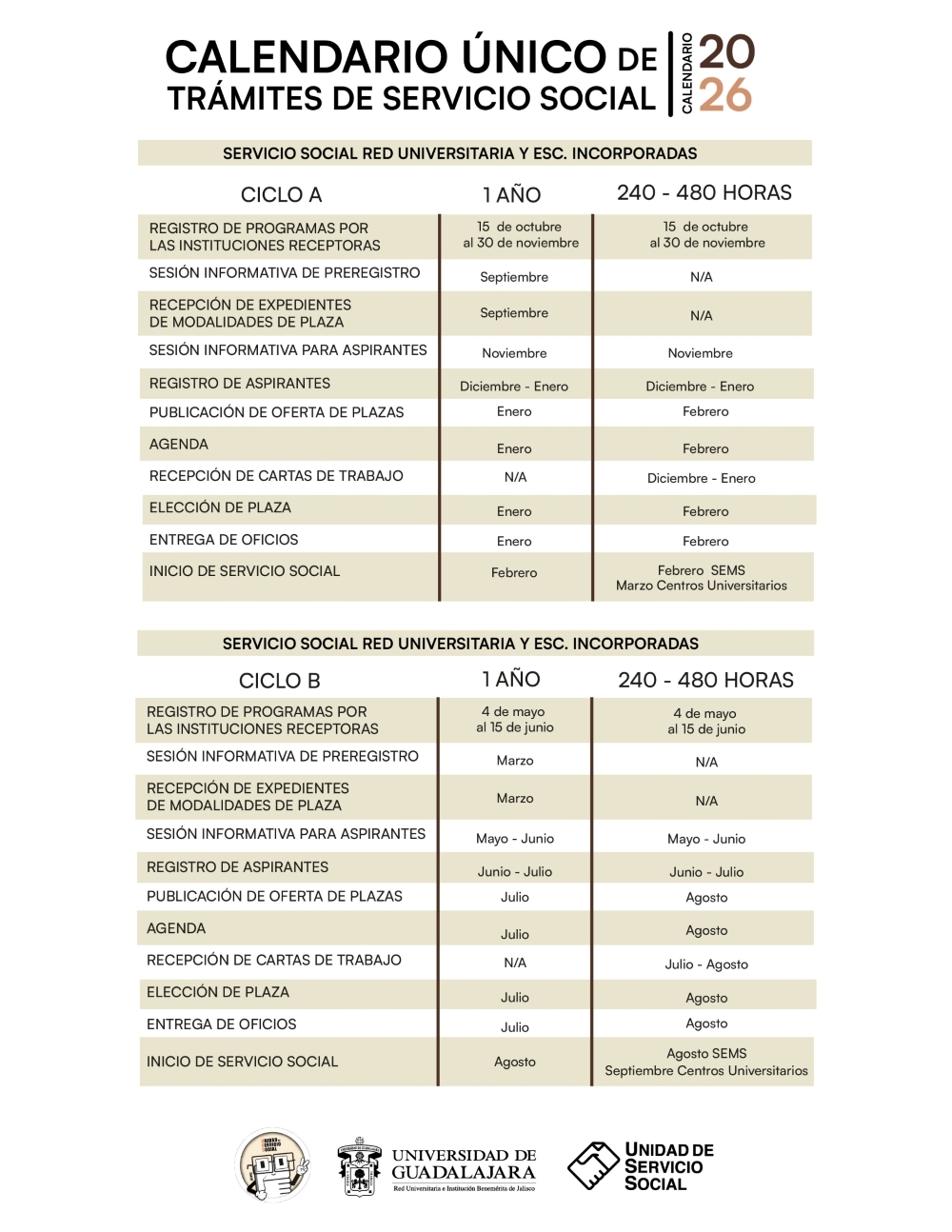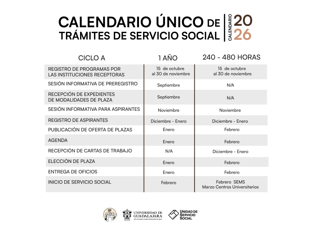 Toda la Red Universitaria a trabajado en conjunto para brindarte un sólo calendario para la prestación de Servicio Social, conoce las próximas fechas